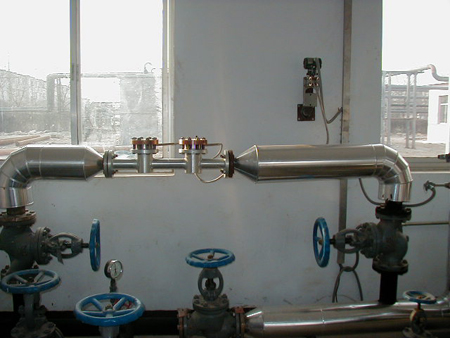 根據重油、煤焦油的黏度大、易凝結和雜質多的特點, 成功開發了防凝堵的重油、煤焦油流量計,克服了有運動部件的重油流量計易堵塞和不能用蒸汽吹掃的缺點。采用差壓測量原理、沒有運動部件、可以用蒸汽吹掃,用蒸汽保溫防止重油凝結。